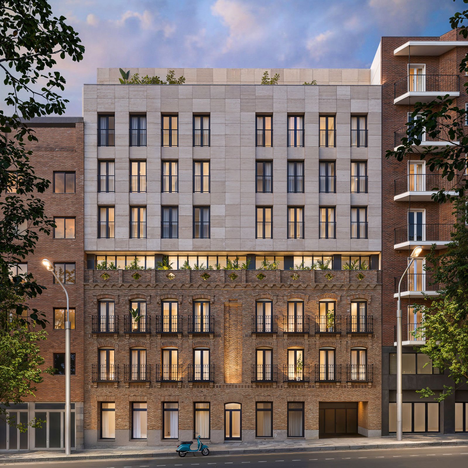 Un edificio único que combina la elegancia de su fachada neomudéjar original con una ampliación integral diseñada para ofrecer todas las comodidades de la vida contemporánea.